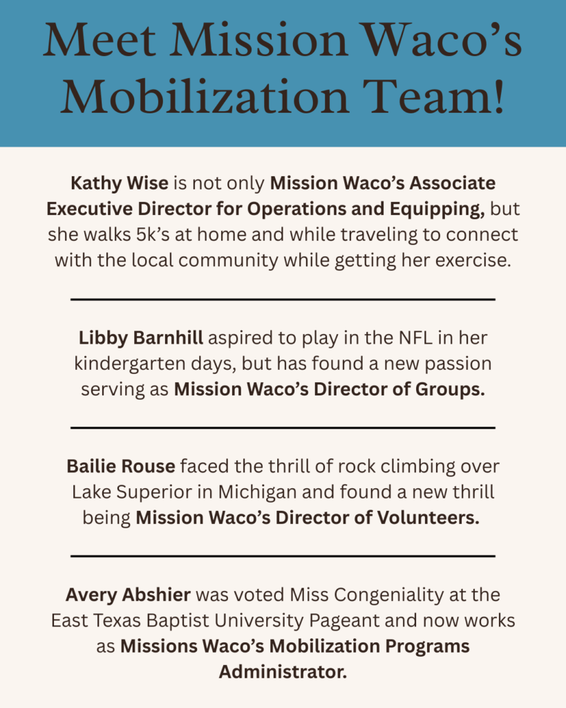 Q: WHAT DOES THE MOBILIZATION TEAM DO FOR MISSION WACO?
